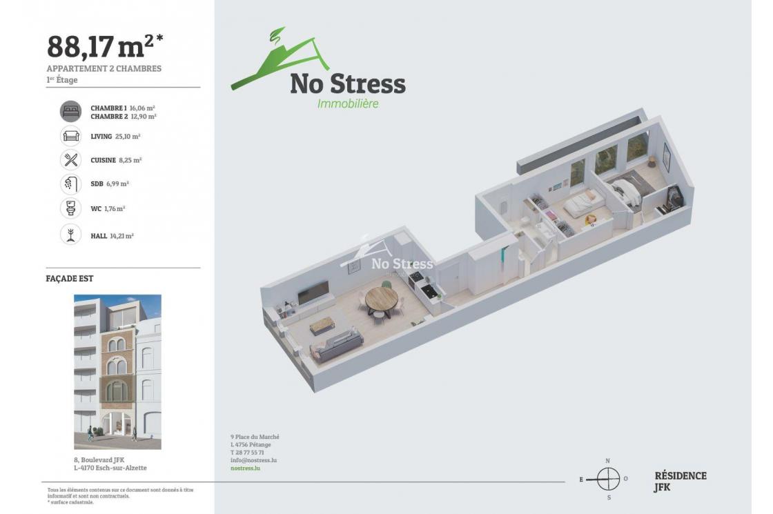 No Stress vous propose à la vente la « Résidence JFK I » au Centre d'Esch, Boulevard John F. Kennedy.