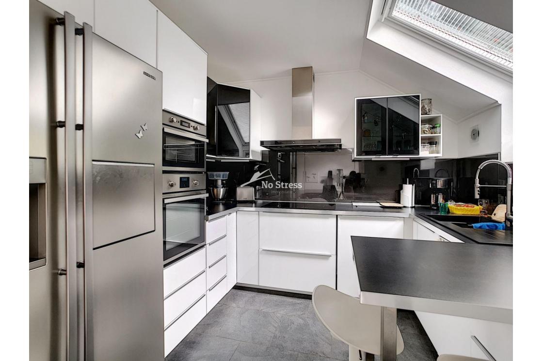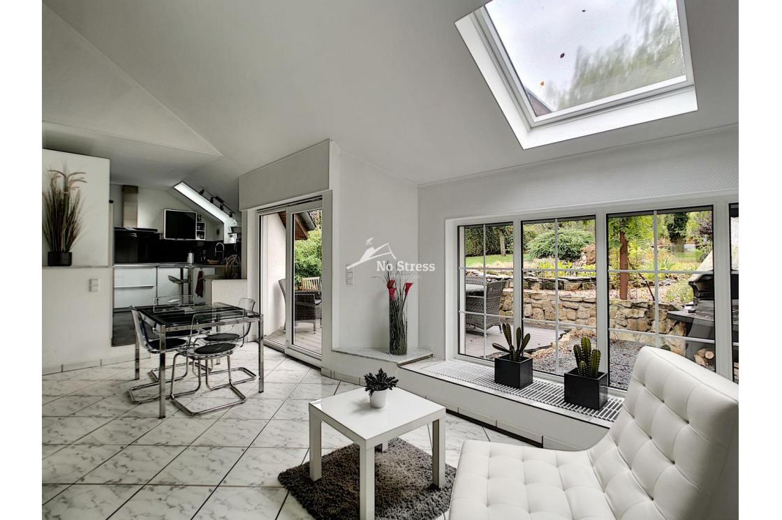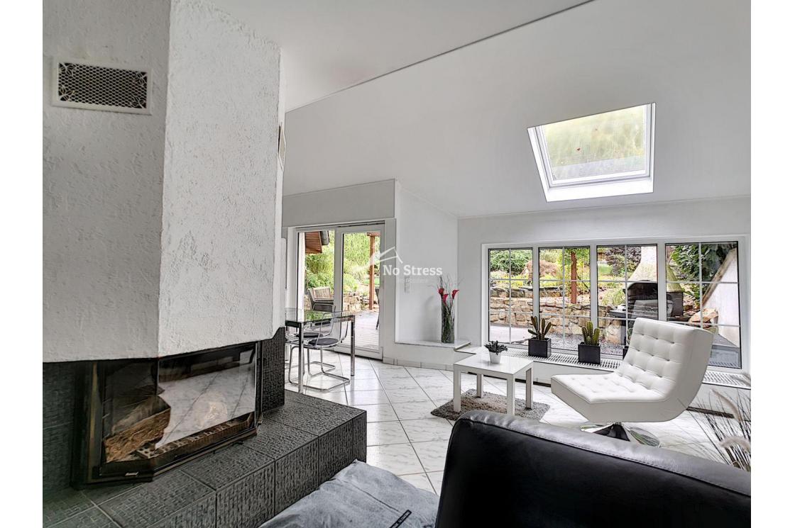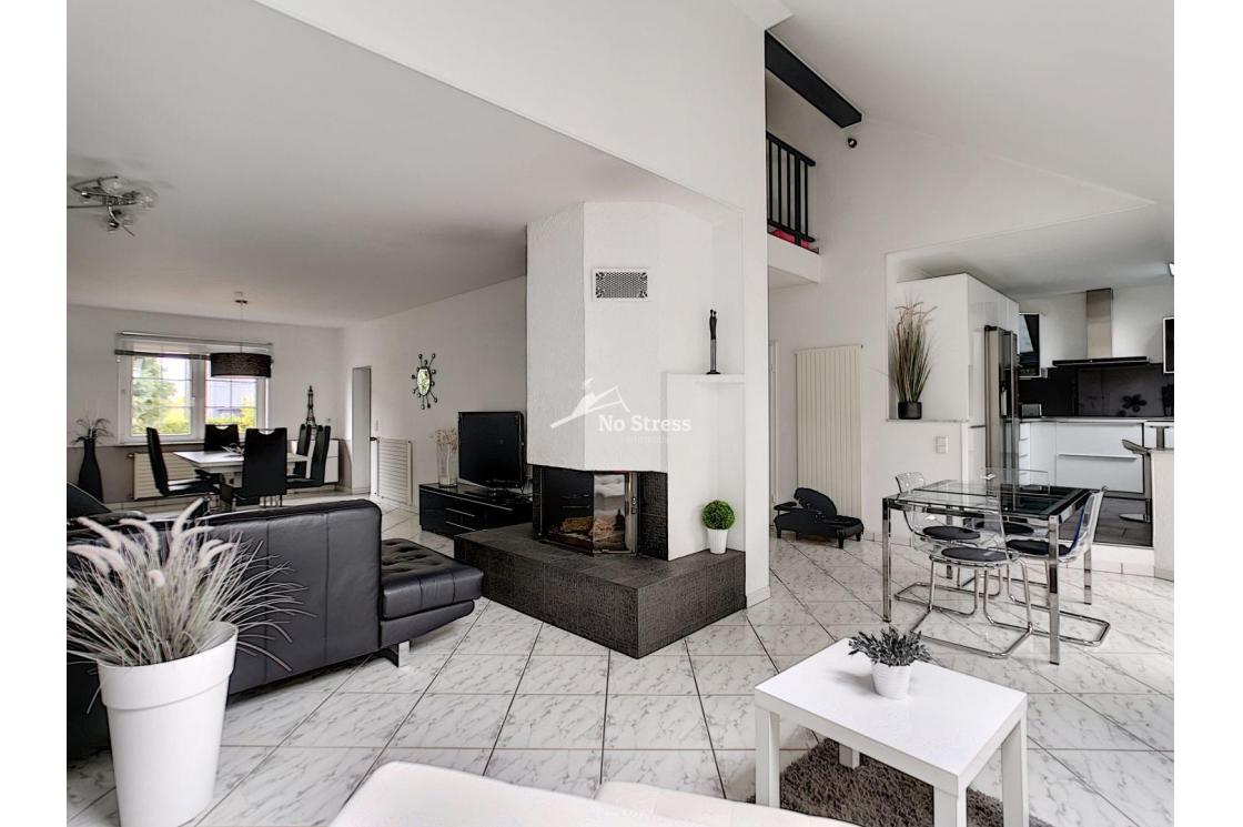 - Cuisine ouverte sur grand living lumineux avec feu ouvert donnant accès à la terrasse de 40m² et jardin