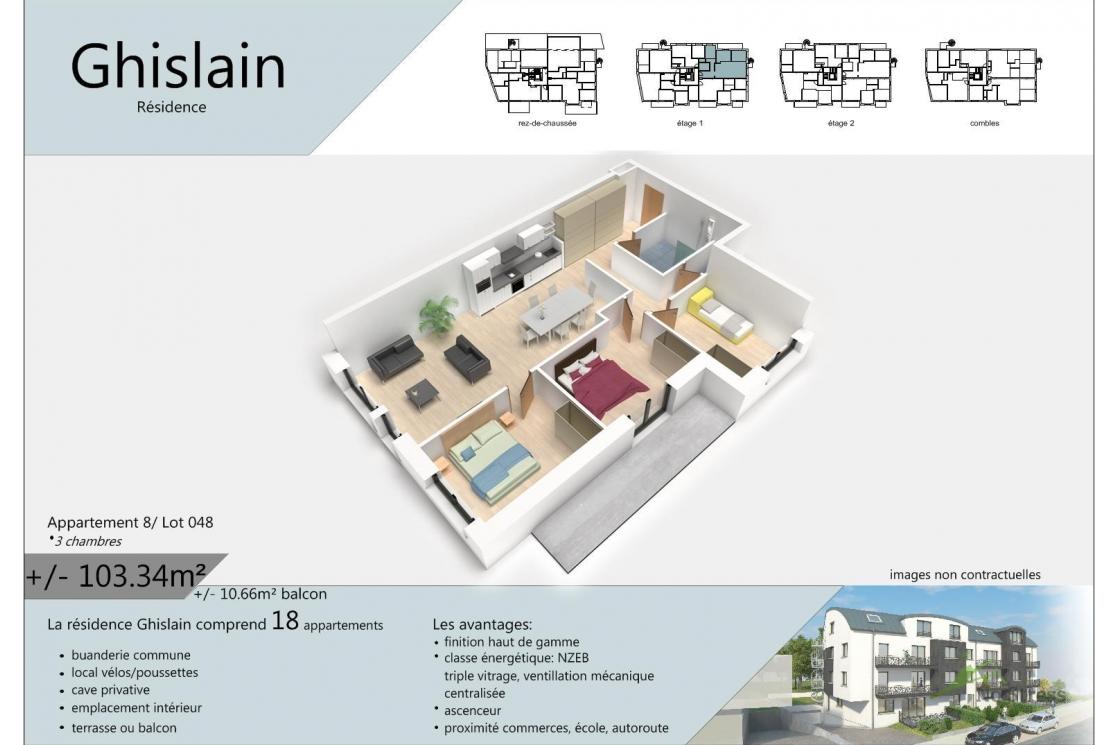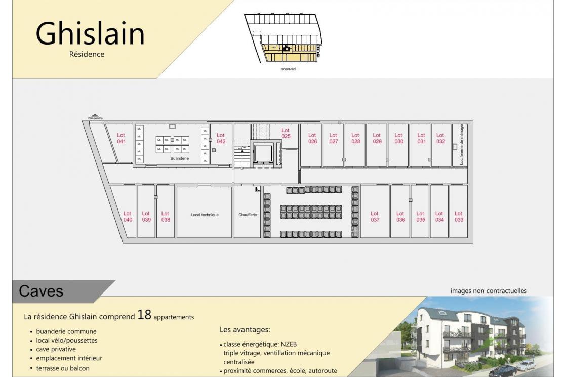 L'immeuble comporte un total de 18 appartements d'une à trois chambres à coucher avec balcon, terrasse, jardin privatif, cave et emplacement pour voiture au sous-sol de l'immeuble.